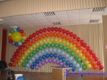 оформление зала шарами на выпускной