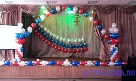 оформление сцены шарами на выпускной