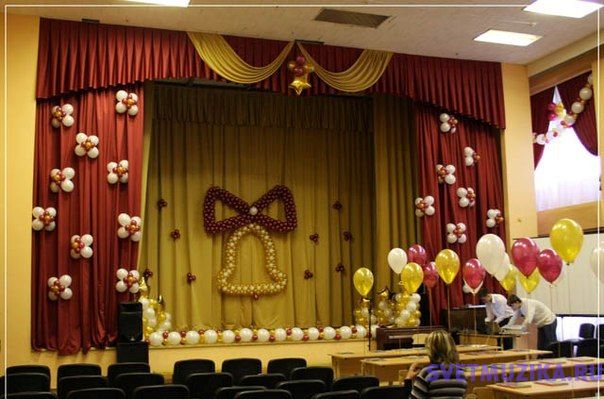 оформление сцены шарами на выпускной